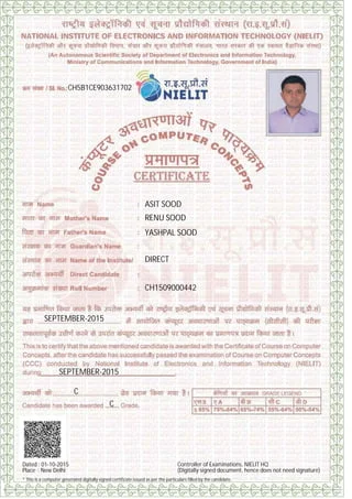 भारत सरकार के सूचना और प्रोद्योगिकी मंत्रालय से मान्यता प्राप्त NIELIT का कोर्स
